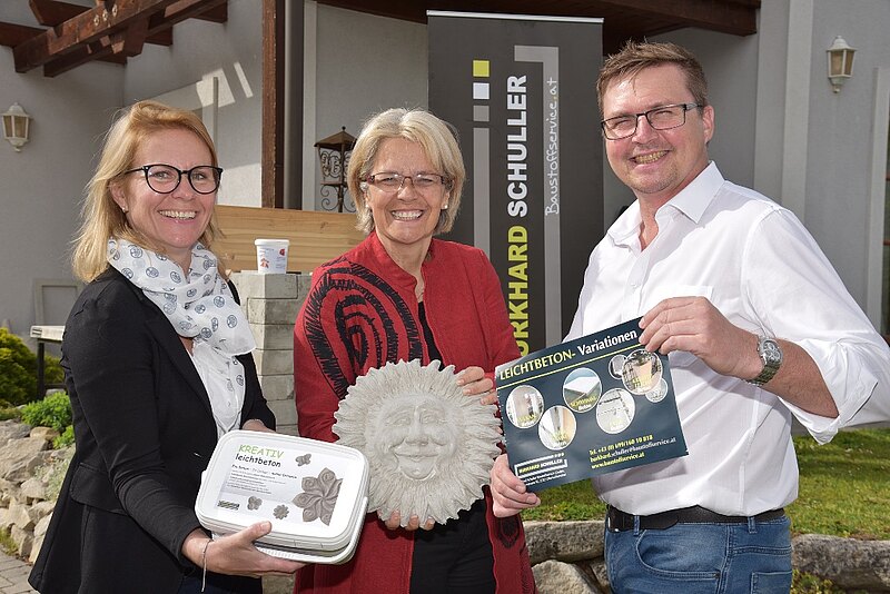 Der schwimmfähige Leichtbeton findet vielfältige Anwendungsmöglichkeiten im Kreativbereich (von der Blumenvase über allerlei Dekos bis zum Schneidbrett) und natürlich als Baustoff. Das große Potential, das in Schullers Leichtbeton steckt, erkannte auch die Marktgemeinde Oberwaltersdorf, wo der Leichtbeton u.a. als Baustoff für Blumenstraßentröge eingesetzt wird.